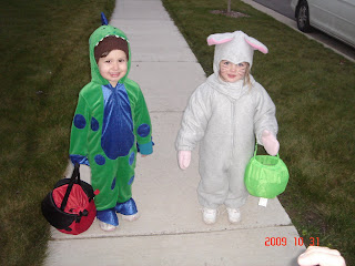 We once thought that we were having a Halloween baby...that was before we realized that life would be too easy if it went as planned. Today was our official due date for our little guy. Instead we are celebrating his 6 week birthday. He wasn't quite ready to go trick-or-treating tonight. We'll save that for next year and many years to come. Just because he couldn't go doesn't mean that the dinosaur couldn't. Tessa was out full-force tonight with her big cousins. Derek wasn't able to go because he was still sick. He instead headed up to the football game where he watched it from his truck. I'm sure he stayed a bit warmer compared to those that were actually in the stadium...brrrr... While Derek was sitting in his truck, and Tessa and I were out and about trick-or-treating, Nolan was busy at home snuggling with Grandpa. Thank you Grandpa...Nolan has needed some boy time since Derek's been out of snuggling commission for several days!